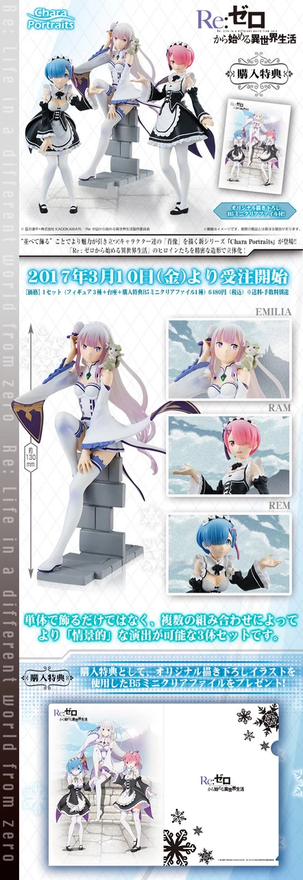 Because of the set “Combination”, the new figure brand “CharaPortraits” that enables more “scenic” director appeared! It is a set of 3 figures of about 130 mm easy to decorate “Re: Zero world life starting from zero”.