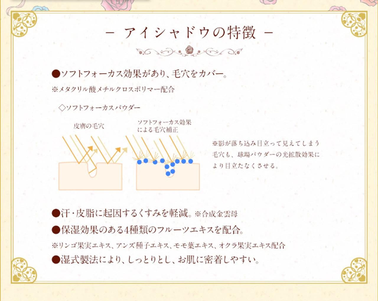 This item is an eye shadow with a motif of transformation item “transformation brooch” of sailor moon appeared in anime “Sailor Moon”. The compact with glittering gold color and luxury is a convenient size to carry in a pouch with a small & thin silhouette of about 7 cm in diameter and about 2.5 cm in thickness that is easy to fit in the hands of girls. On the top lid are designed with plenty of attention to detail, including crescent moon stamping and five color stones that imaged 5 sailor fighters (Sailor Moon, Sailor Mercury, Sailor Mars, Sailor Jupiter, Sailor Venus).