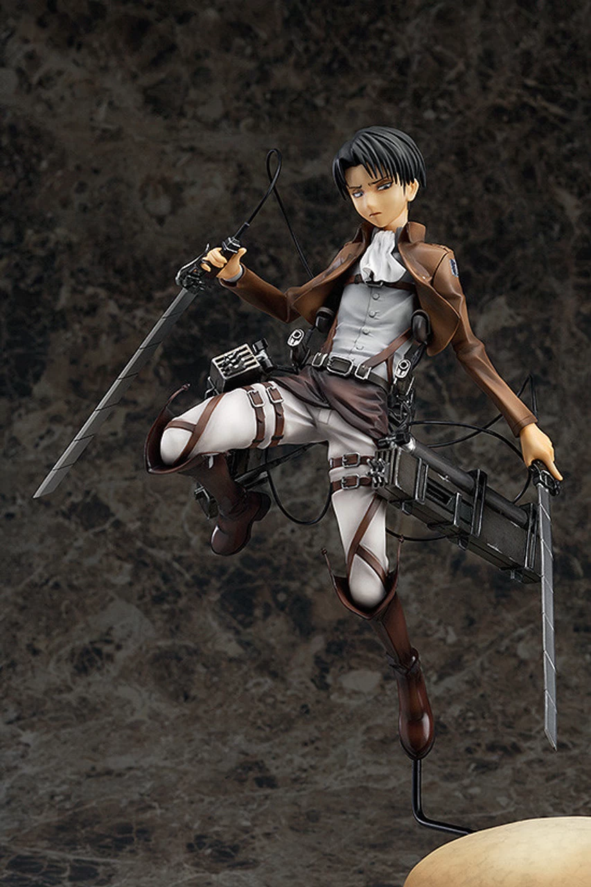 From the popular anime series ‘Attack on Titan’ comes a 1/8th scale figure of the Survey Corps corporal, Levi! He has been posed gracefully gliding through the air with his vertical maneuvering equipment as his Scouting Corps cape flutters behind him.